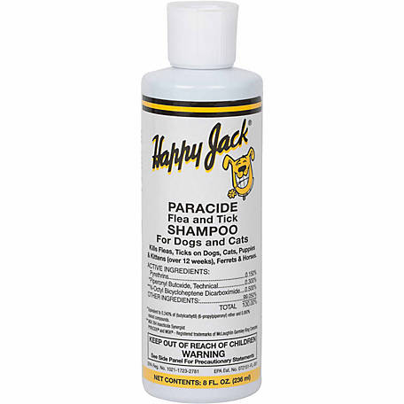 Happy Jack Paracide Flea and Tick Shampoo for Dogs and Cats (8 OZ)
