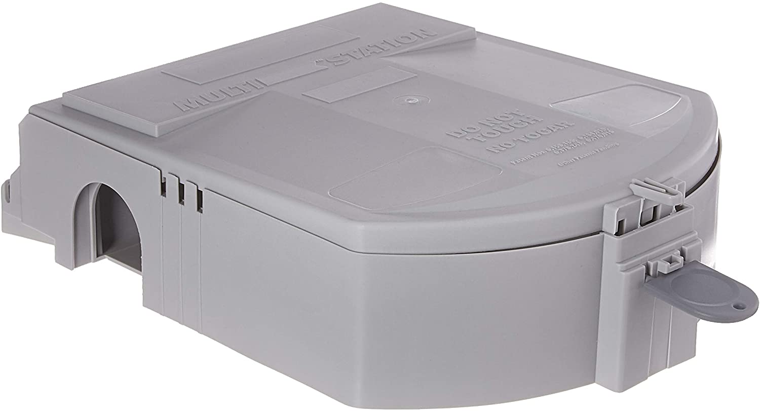 Multiplex bait station, re-usable with vertical & hanging block layouts, tamper resistance, both sides of bait chamber can house standard plastic Mouse snap traps, for rural/agricultural use only, ordering restrictions may apply, contact Merchant for ordering details.